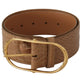 Brown Beige Leather Gold Metal Oval Buckle Belt