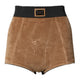 shorts are crafted from soft brown cotton with a high-waisted silhouette for a flattering fit. Perfect for casual summer styling or pairing with elegant tops, these hot pants combine comfort and sophisticated Italian design in a modern, wearable look.