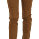 Brown Cotton Mid Waist Skinny Slim Fit Denim Jeans