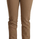 Brown Cotton Stretch Mid Waist Skinny Pants