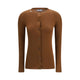 The ribbed wool Cardigan by Prada is a refined and versatile garment, made from pure virgin wool to ensure warmth and comfort. The ribbed design gives it an elegant texture and a soft fit, while the crew neck adds a touch of simplicity and style. The button closure makes the cardigan practical and easy to wear, while Prada’s iconic metal triangle on the top adds a distinctive and luxurious detail.