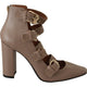 Brown Leather Block Heels Multi Buckle Pumps Shoes