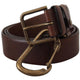 Brown Leather Gold Metal Buckle Carabiner Belt