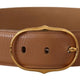 Brown Leather Gold Metal Oval Buckle Belt