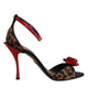 sandals fuse bold sensuality with romantic charm. Crafted in a striking brown leopard print, they are adorned with exquisite crystal-embellished rose appliqués that add a touch of opulence. The delicate straps and high heel create a feminine, sophisticated silhouette — perfect for evening occasions or elevating any glamorous ensemble.