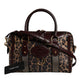 Brown Leopard Leather Shoulder Strap Duffle Bag