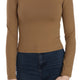 Brown Long Round Neck Sleeve Fitted Shirt Tops Blouse