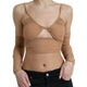 Brown Nylon Stretch Open Shoulder Cropped Top