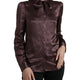 Brown Silk Ascot Collar Long Sleeve Blouse Top