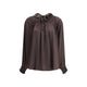 The Geometric Silk Blouse by Burberry is crafted in Italy from silk crêpe de chine, jacquard-woven with a geometric pattern inspired by wallpapers found in British stately homes. Designed for a relaxed fit, it features smocking and delicate ruffles that shape the neckline and cuffs. Button fastening, a self-tie collar, elasticated cuffs, and side splits complete this timelessly elegant piece.