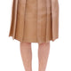 Brown Silk Solid Mini Pleated Skirt