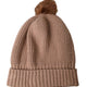 Brown Solid Knitted Fur Ball Winter Beanie Hat