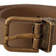 high-quality leather featuring a brass tone buckle closure. A unique eye-catching belt full of character.