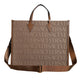 Brown Top Handle Jacquard Leather Logo Crossbody Tote Bag