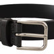 Calf Leather Silver Tone Black Metal Buckle Belt