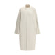 Rick Owens’ off-white Island coat features an asymmetrical front overlay, relaxed fit and straight hem.