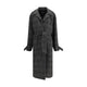 Balenciaga’s Long Coat is a statement piece that combines elegance and character. Crafted from wool with a refined checked design, it features welt pockets on the front and distinctive details such as belt loops on the collar and sleeve. The front belt closure enhances the silhouette, while the classic collar without a hood lends timeless elegance.