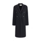 This classic Wool Coat features decorative horn buttons inspired by double-breasted styling. It has a central closure with fabric-covered buttons, horn details on the front and cuffs, a welt chest pocket, and side pockets. An timeless and refined piece, perfect for transitional seasons
