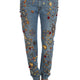 Gorgeous brand new with tags, 100% Authentic Dolce & Gabbana blue wash crystal heart Roses embellished enchanted Sicily boyfriend fit jeans. This item comes from the exclusive MainLine Dolce & Gabbana Collection.