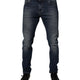 Dark Blue Cotton Leather Skinny Denim Jeans