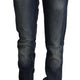 Dark Blue Washed Cotton Skinny Denim Low Waist Jeans