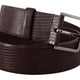 Dark Brown Calf Leather Silver Logo Metal Buckle Belt