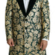Absolutely stunning, 100% Authentic, brand new with tags Dolce & Gabbana Gold Green Jacquard Coat Sicilia Jacket features a single breasted two button closure and a peak lapels.