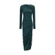 Ferragamo’s Draped Midi Dress is an elegant and feminine piece featuring a simple crew neck and gathered details that shape and enhance the figure. Made of stretch jersey, it features ruched pleats running all the way down the left side, while the asymmetric hem is embellished with a deep slit and a hidden zipper at the right shoulder for a sophisticated modern touch.