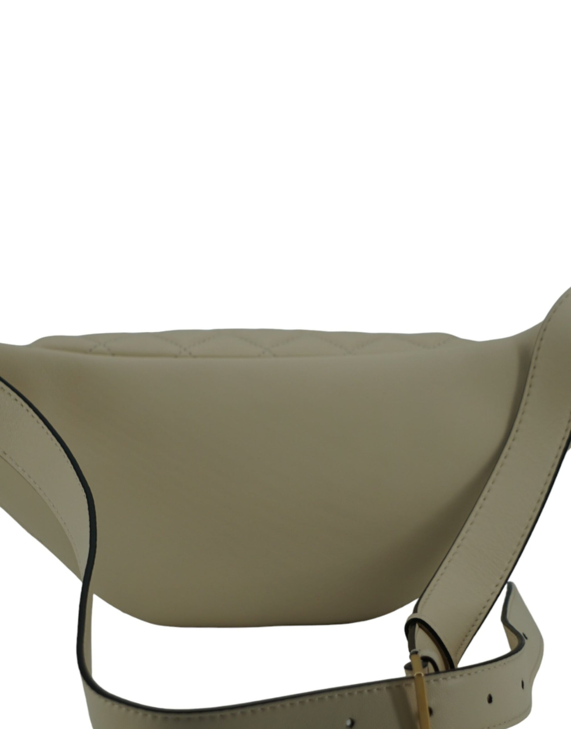 Indulge in the epitome of luxury with this pristine white Belt Bag, a masterpiece from the renowned house of Versace. Expertly crafted from sumptuous 100% lamb leather, this brand new accessory is accompanied by tags and its original dustbag. Its compact silhouette, featuring a secure zip closure, unravels to reveal a meticulously organized main compartment. Inside, an internal slip pocket with signature logo details ensures your essentials remain neatly stowed. Designed for comfort and versatility, the adjustable leather belt strap allows you to wear it in multiple styles, elevating any outfit with its sophisticated charm.