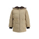 The fabric Bomber Jacket by Gucci reinterprets the maison’s heritage through the GG motif in camel and ebony tones. Cut in a regular fit with dropped shoulders, the silhouette blends functionality and sophistication: a ribbed high collar, adjustable drawstring waist, and two-way zipper closure meet rib-knit cuffs and hem. Fully lined and padded for comfort, the jacket is finished with practical inner and outer pockets, embodying a balance of timeless elegance and everyday utility.