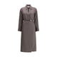 Fendi’s FF silk jacquard Dress is a masterpiece of sophisticated elegance and iconic details. Made of jacquard silk with the famous dark brown FF check pattern, it features a shirt-style collar and cuffs that lend structure to the flowing design. The dropped shoulder and drop detail on the neckline add a touch of soft femininity, while the asymmetrical crisscross closure with small side button enhances the silhouette in an original way. Completing the look is the coordinating FF buckle belt for a refined and recognizable effect.