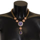 Gold Brass Crystal Purple Pink Pearl Pendants Necklace
