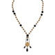 Gold Chain Brass Black Beaded Rosary Style Necklace