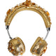 Gold Leather Floral Crystal Angel Headset Headphones