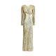 Self-Portrait’s Gold thread long Dress is made of gold fil coupé, which gives the garment a refined, incandescent glow. The design features an open back with an asymmetrical cut, a side slit skirt, and a figure-flattering gathered bodice. The side zipper closure completes this elegant and seductive look.