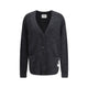 The Eborah Cardigan in alpaca blend by Marant Étoile combines comfort and character in a contemporary design. Crafted from a soft, enveloping yarn, it features a V-neckline and a front button closure. The contrasting embroidered logo at the hem adds a distinctive touch, while the two front slit pockets enhance its practicality. Ribbed cuffs and hem complete the look, finished with an oversized fit that makes it ideal for relaxed layering.