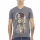 Elevate your casual repertoire with the impeccable craftsmanship of Trussardi Action. This short-sleeve T-shirt with its refined V-neck cut exudes a cool, contemporary vibe, highlighted by a striking front print that commands attention. Crafted from the finest blend of cotton and viscose, it offers both comfort and style. Sophisticated yet relaxed, this gray ensemble piece embodies the bold and trendy aura perfect for the modern man.