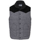 Gran Sasso Prince of Wales Padded Sleeveless Jacket. Front fastening with exposed snap buttons, two pockets on the side, black wool collar with bouclé effect. Black corduroy panel on contrasting chest and front. Rounded pattern at bottom. Composition: 100% Cotton, 100% Polyester. Inner Sku: 24SET32