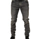 jeans offer a sleek, modern silhouette with all-day comfort. Crafted from gray cotton stretch denim, they feature a slim fit that tapers neatly through the leg for a refined look. Classic five-pocket styling and subtle designer detailing make them a versatile choice, perfect for both casual and smart-casual outfits.