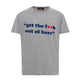 otton T-Shirt with ‘Get the f**k..’ print Dsquared2. Grey mélange cotton, crew neck, short sleeves, contrasting front print. Composition: 100% Cotton-Sku inside:24MG37