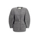 The wool and cotton tweed Blouson Jacket by Fendi with a check pattern reinterprets the timeless charm of the fabric in a modern, sophisticated way. The cocoon silhouette, both enveloping and contemporary, is defined by wide long sleeves and a round neckline that enhances the garment’s balanced proportions. The concealed front fastening preserves the clean, essential design, while the refined tweed texture adds depth and character, shaping a piece that blends tailoring tradition with urban elegance.