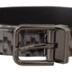 Gray Herringbone Leather Gray 3D Metal Buckle Belt