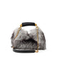 Tom Ford Eco Fur Hobo Bag. Gray/black color, covered in fur, hand model with leather handle and brass chain for use as a shoulder bag. Snap button closure, single internal compartment.