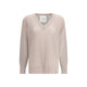 The mohair wool Sweater Giselle by Cruna embodies a refined balance of comfort and sophistication. Crafted in English rib knit, it features a soft oversized silhouette enhanced by a deep V-neckline and subtly padded shoulders. The mohair and wool blend provides natural warmth and lightness, ensuring effortless elegance for the colder season. A versatile piece designed to elevate everyday style with understated femininity.
