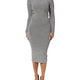 Gray Nylon Bodycon Sheath Long Sleeves Dress