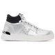 Versace Jeans Couture high sneakers in silver painted eco-leather, logo printed on the back, contrasting white laces, white rubber sole