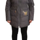Gray Quilted Long Sleeves Logo Patch Full Zip Jacket
