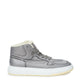 High Sneakers with Inner Fur MM6 Maison Margiela in grey technical fabric, lace-up front with tone-on-tone laces, slightly squared toe with small holes, contrasting white sole with hammered work. Engraved numbers on the back of the sole, iconic contrast stitching on the back of the shoe, fur on the inside of the entire shoe. Sole height: 4 cm-Sku inside:23NOV56