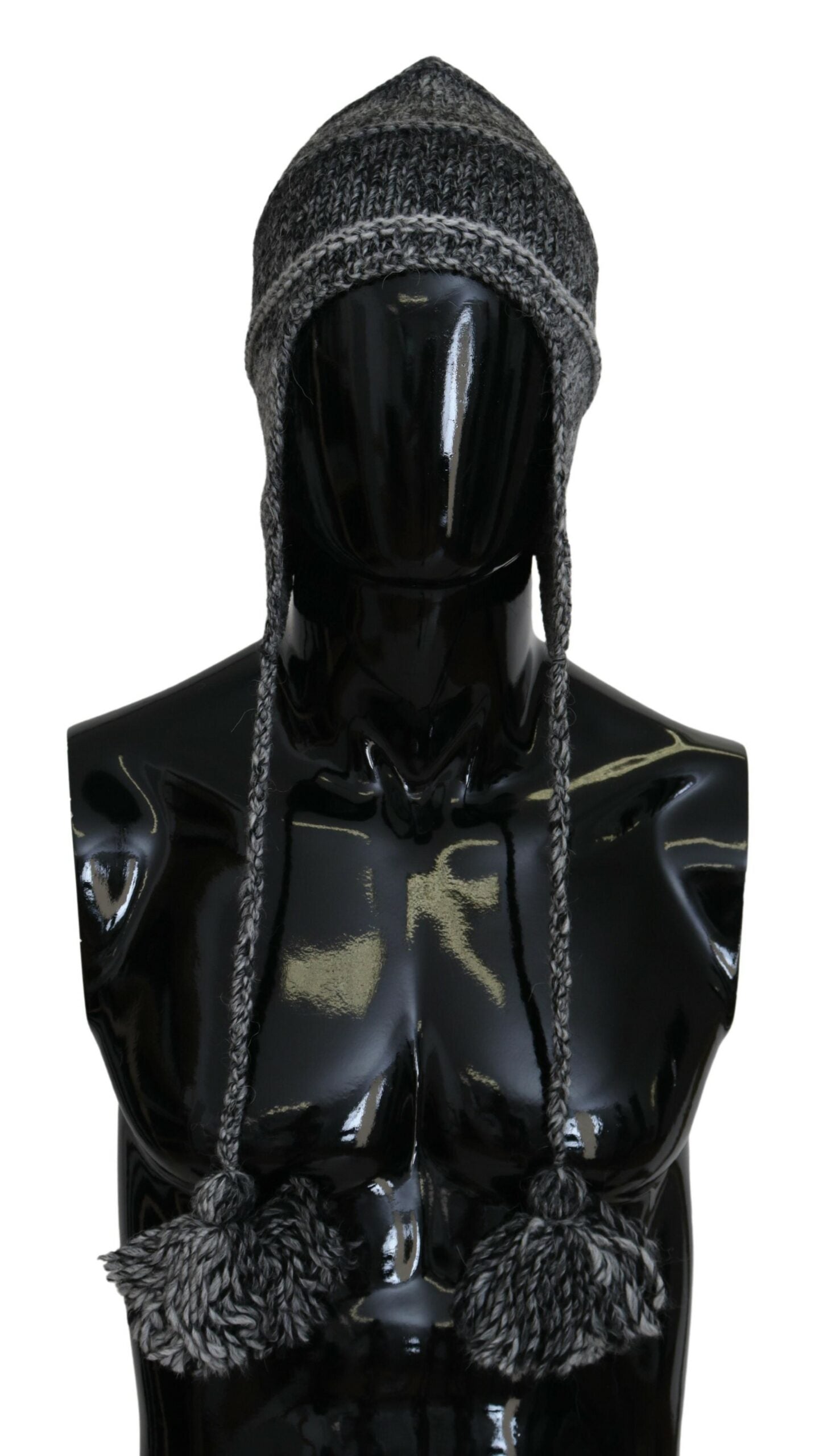 Gray Warm Fleece Ear Flaps Knit Beanie Hat