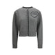 The fitted logo Cardigan by Chloé is crafted from ribbed wool and cashmere knit, featuring a refined crew neck and contrasting trims that define its silhouette. The front fastening is detailed with fabric-covered buttons, while the embroidered Chloé logo on the chest—framed by a heart—adds a distinctive and romantic touch to the design.